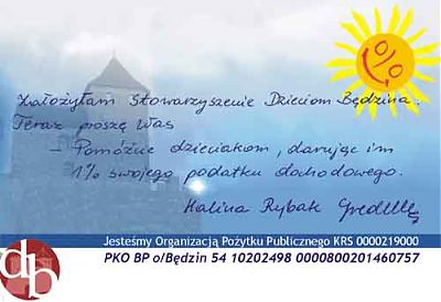 Dlaczego „mały, wielki procent?. Bo ten jeden procent to jest aż jeden procent. Teoretyzując i... mnożąc go np. przez liczbę pracujących mieszkańców powiatu będzińskiego, można by uzyskać naprawdę poważną kwotę. Tylko dobre chęci i malutka fatyga związana z przelewem lub wpłatą...