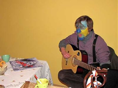 A tu studniówki. I karnawał. No to, chociaż Arek Skowron (na zdjęciu) dał stubarwny popis. Nasz gorący piec przyciągnął wielu sympatyków salonikowej poezji. Wszyscy tryskali humorem a Profesor w czapce Naczelnika Polskiej Poczty Poetyckiej brawurowo wkraczał na scenę jednego aktora.