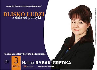 Będę ubiegać się o mandat do Rady Powiatu Będzińskiego z Okręgu nr 2 (Grodziec, Ksawera, Łagisza, Zamkowe), miejsce nr 3 na liście 4 Platformy Obywatelskiej.