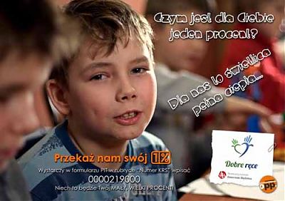 "Zamiast wciąż na boku stać trzeba jeden procent dać! Miast zostawać wciąż w rozterce, okaż tym procentem serce..." Włodzimierz Wójcik